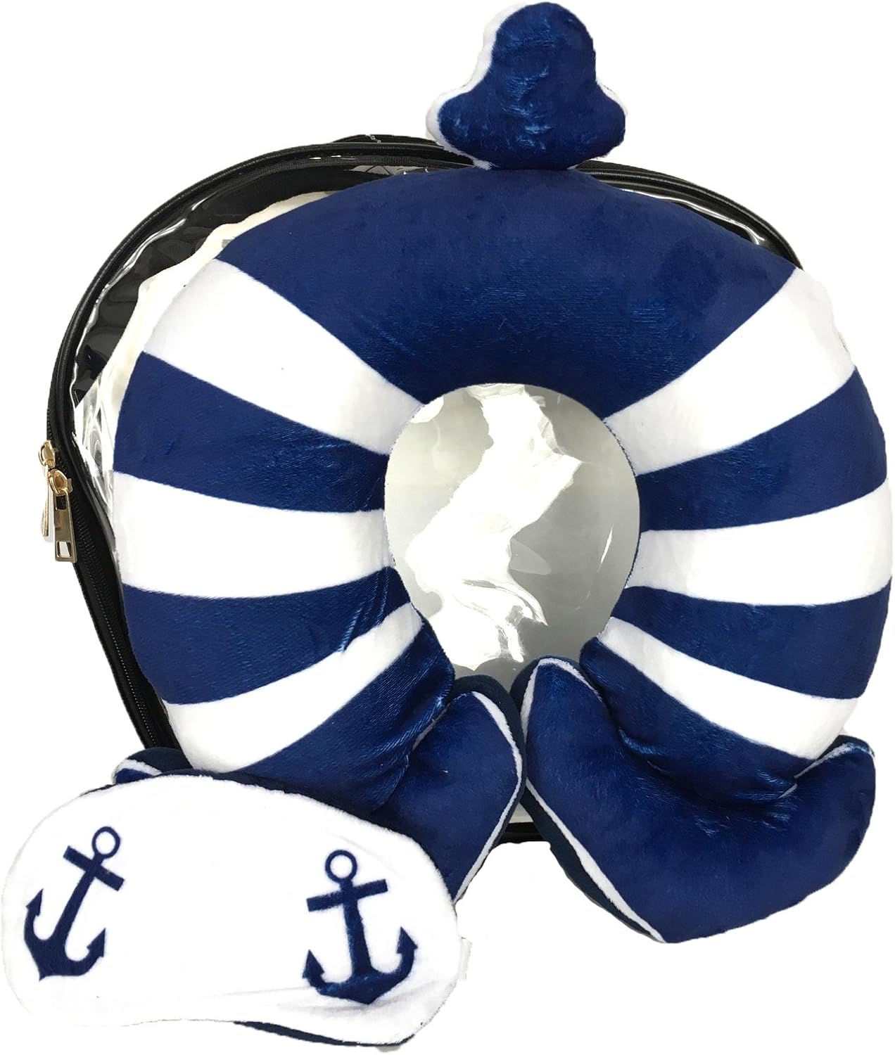 Nautical Neck Pillow, Eye Mask & Clear Travel Case Set